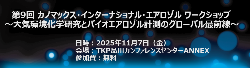 昨年に引き続き、「第9回 カノマックス・インターナショナル・エアロゾルワークショップ」を開催する運びとなりました。今回は、最先端のエアロゾル研究における、大気環境やバイオエアロゾル計測に関する課題やトピックス、ならびに最新の計測・分析技術動向のご紹介とディスカッションの場としてご活用いただけましたら幸いでございます。