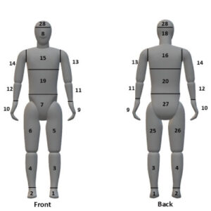 また、人口統計に基づいて設計された自然な体形(男性/女性)で、皮膚温度と熱流束を独立して測定できる23の身体ゾーンで構成されます。これにより、等価温度、全体的快適性(PMV)、局所的感覚指数、Clo値や熱絶縁値を自動的に分析することができます。